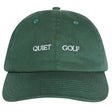 The Quiet Golf Typeface Dad Hat is a streamlined and simple cap that uses bold, clean lettering to display the brand name. While sharing the "Dad Hat" casual silhouette, some versions feature a slightly more structured "Snapback" style and a high-performance nylon fabric, making it a perfect mix of vintage comfort and modern functionality.